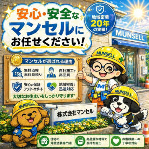 熊本市で外壁塗装をお考えの方は、地域密着20年の実績を持つ株式会社マンセルへ、ぜひ一度お気軽にご相談ください。あなたの大切な住まいを守るために、最適なご提案をさせていただきます。